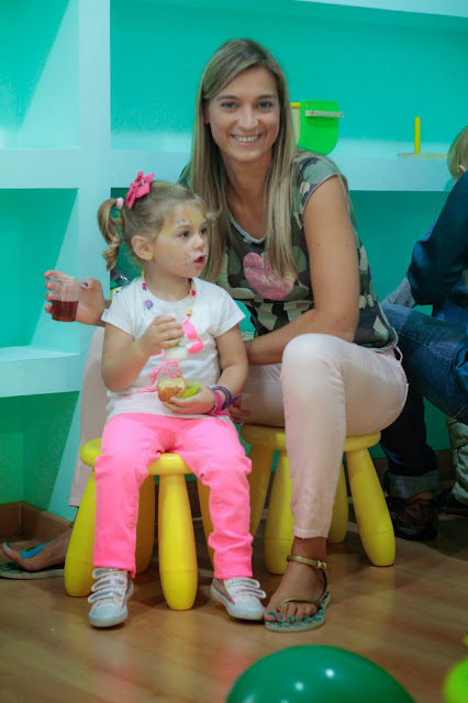 A Vera e a Catarina da To Be Kid, decoraram, organizaram e receberam-nos no espaço, que em Telheiras,  às 10 da manhã, já estava preparado. E elas frescas e sorridentes para receber as quase 50 pessoas (pais e filhotes) que foram chegando...